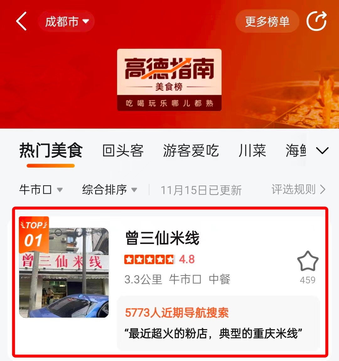 2022年9月,在众多食客的呼声下,赵永强决定来到成都发展,从选址到门店设计、设备采买亲力亲为,经过一个月的筹备,10月1日,位于牛市口的曾三仙顺利开启试营业,这期间,在没有任何营销推广的情况下,稳占大众点评小吃快餐热门榜TOP1,斩获高德指南牛市口热门榜第一名,实时抽查,均在榜一。