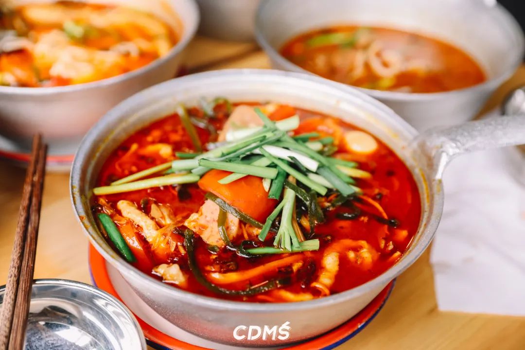 用料也很丰富,除了传统的滑肉、猪肝类的荤菜,里面还加了午餐肉和鹌鹑蛋。辣度反而我们都觉得还好,没有某正某南辣度那么恐怖。连@阿曾都完全吃得下去。但唯一的问题就是,如果你第一口吃的火锅三仙,那么其他味道你后面再吃,都感觉很淡很淡。且汤底在这个天气,如果吃得慢,很容易就凝起了(牛油的通病)。