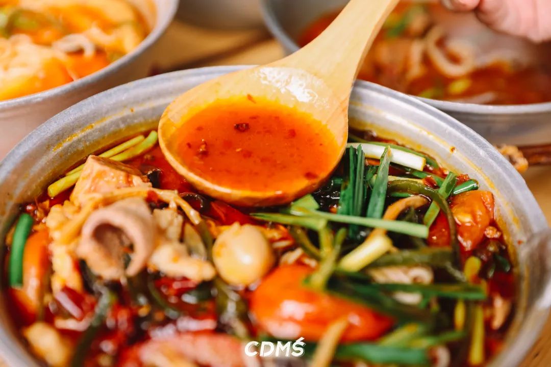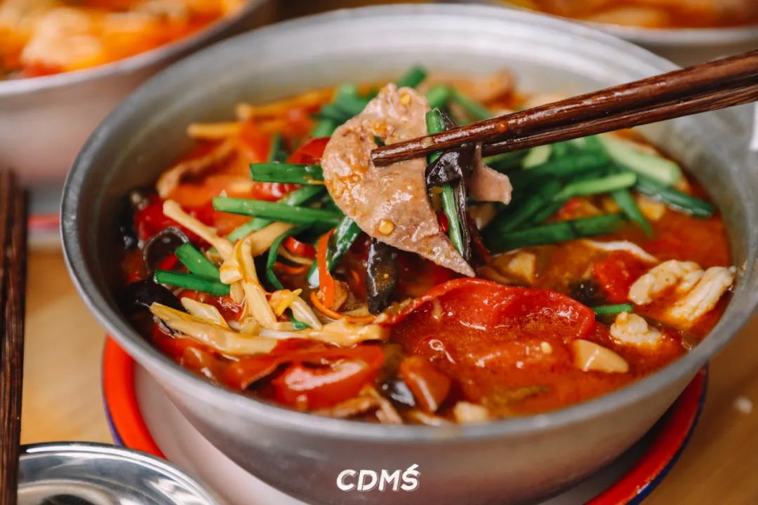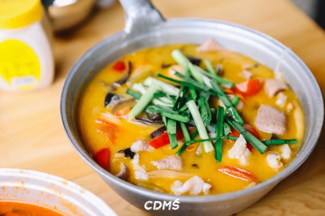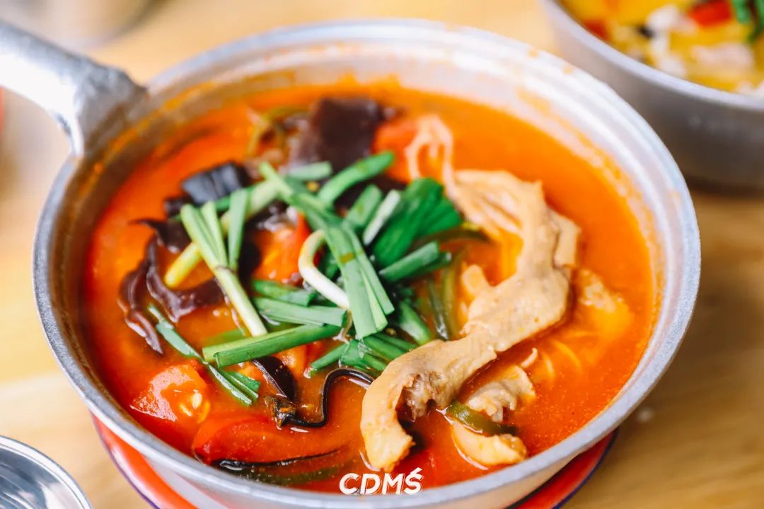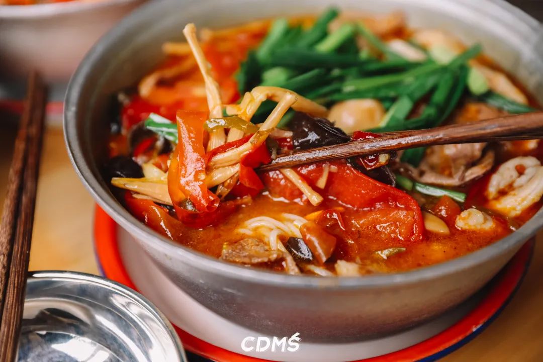 另外一款就是糯鸭掌米线,我们点的番茄味。这个味型就是和你在超市买的番茄汤锅包一样的味道。且我们在点单的时候,看到操作师傅,在锅里面加了三大勺鸡精,所以鲜味自然而然特别浓郁...
