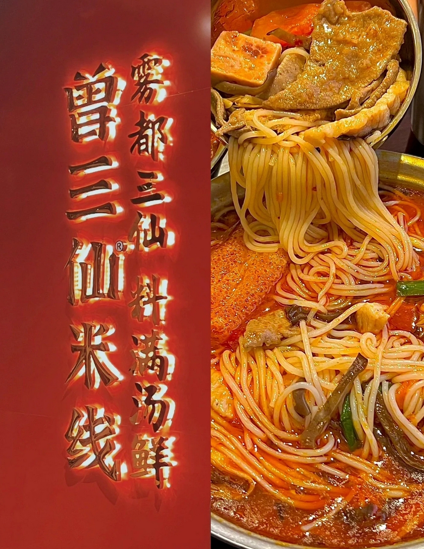 曾三仙跑遍200多家米线商才定下的细米线Q弹有筋道,吸满了汤汁很入味,一口米线一口配菜一口汤,筷子一捞全是料,吃上一瓢满足到翘脚!