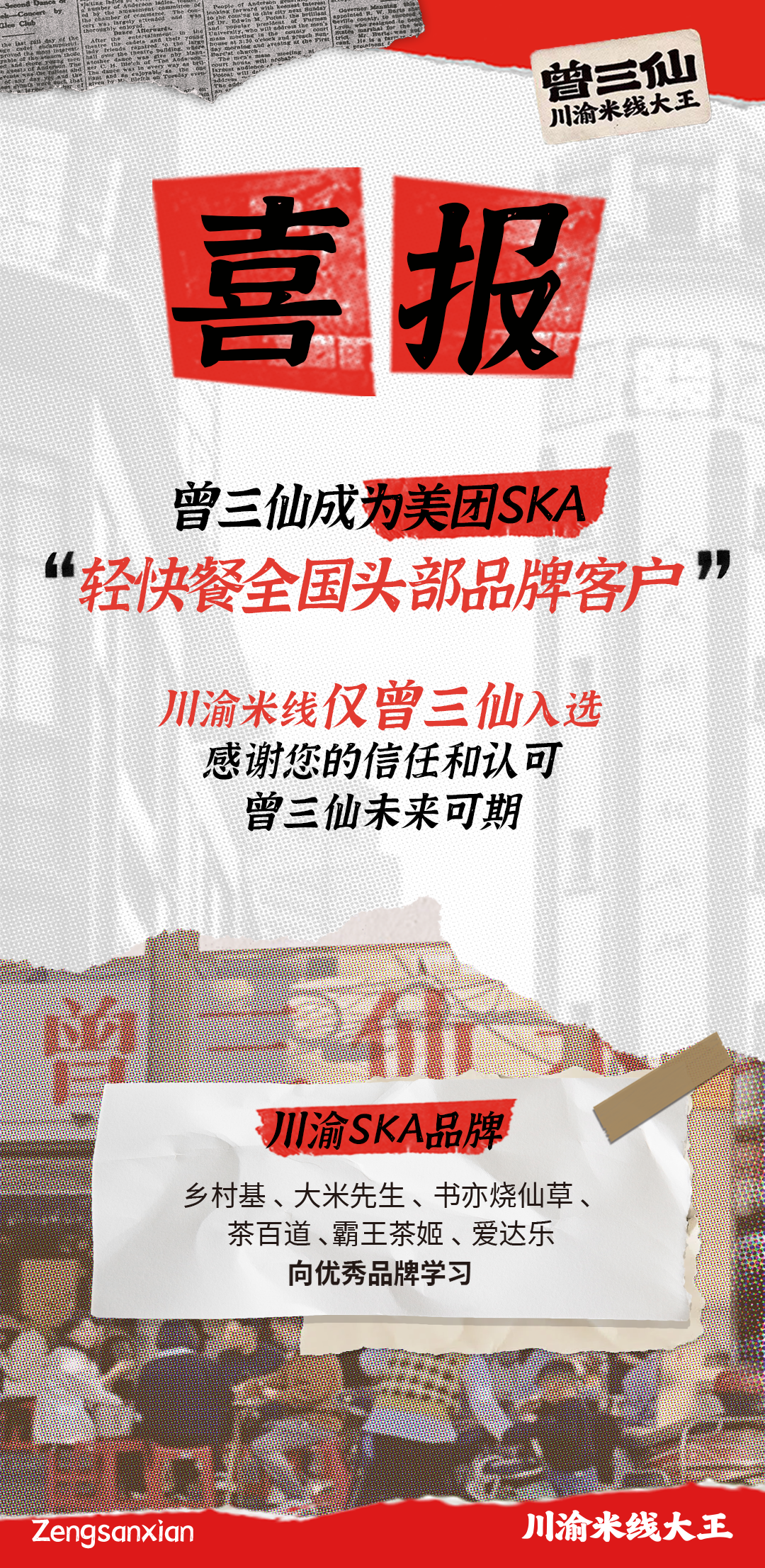 恭喜曾三仙成为美团SKA“轻快餐全国头部品牌客户”