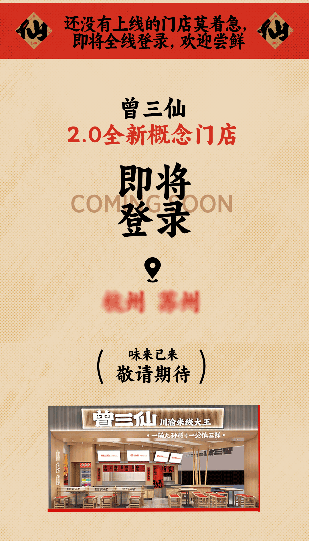 曾三仙米线:重要通知!曾三仙米线2.0全新升级!