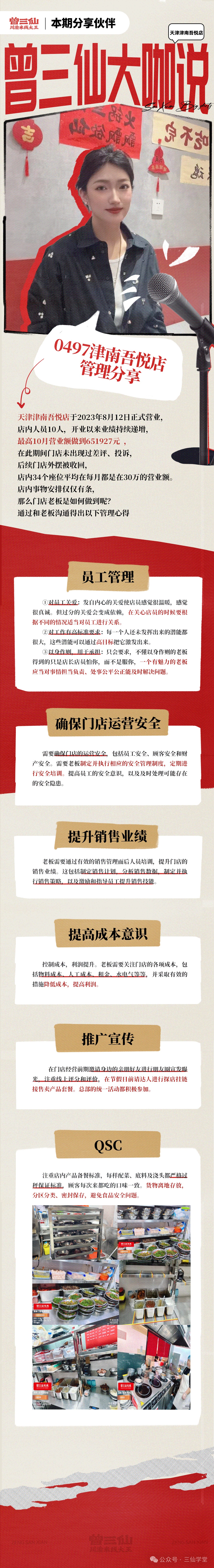 曾三仙大咖说:餐饮加盟开店必看!0497津南吾悦分享